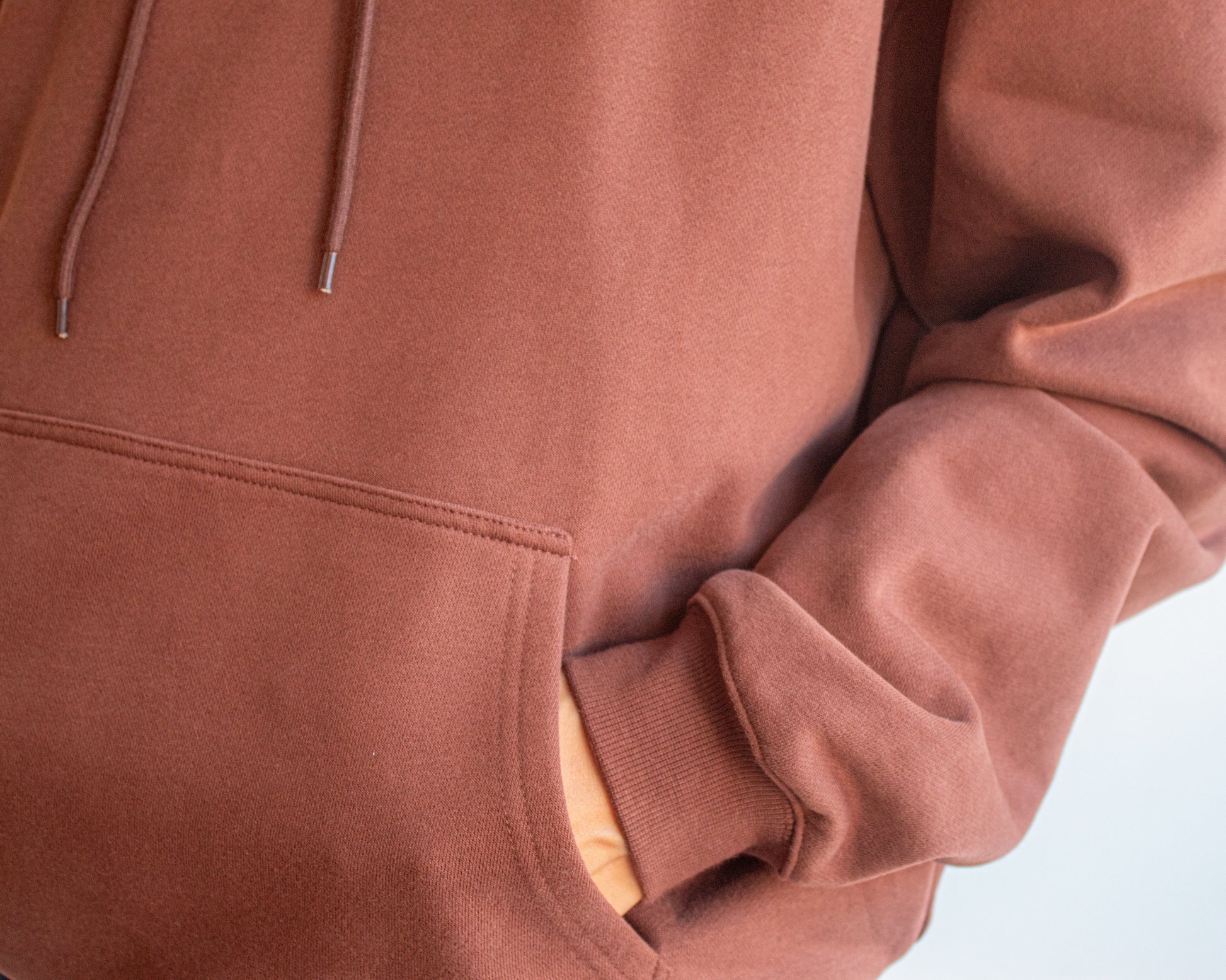 - Drop shoulder, slight crop, elongated sleeves, roomy hood